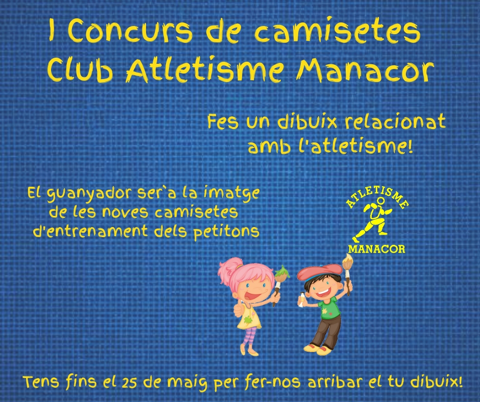 Des del Club, aquest any hem apostat per l’educació i, l’artística i la creativitat és molt important. Per això, enguany proposam el I Concurs de camisetes Club Atletisme Manacor perquè els nins i nines fins a 12 anys participin amb un dibuix relacionat amb l’atletisme. El dibuix guanyador serà la imatge que lluiràn les camisetes d’entrenament dels més petitons la següent temporada.