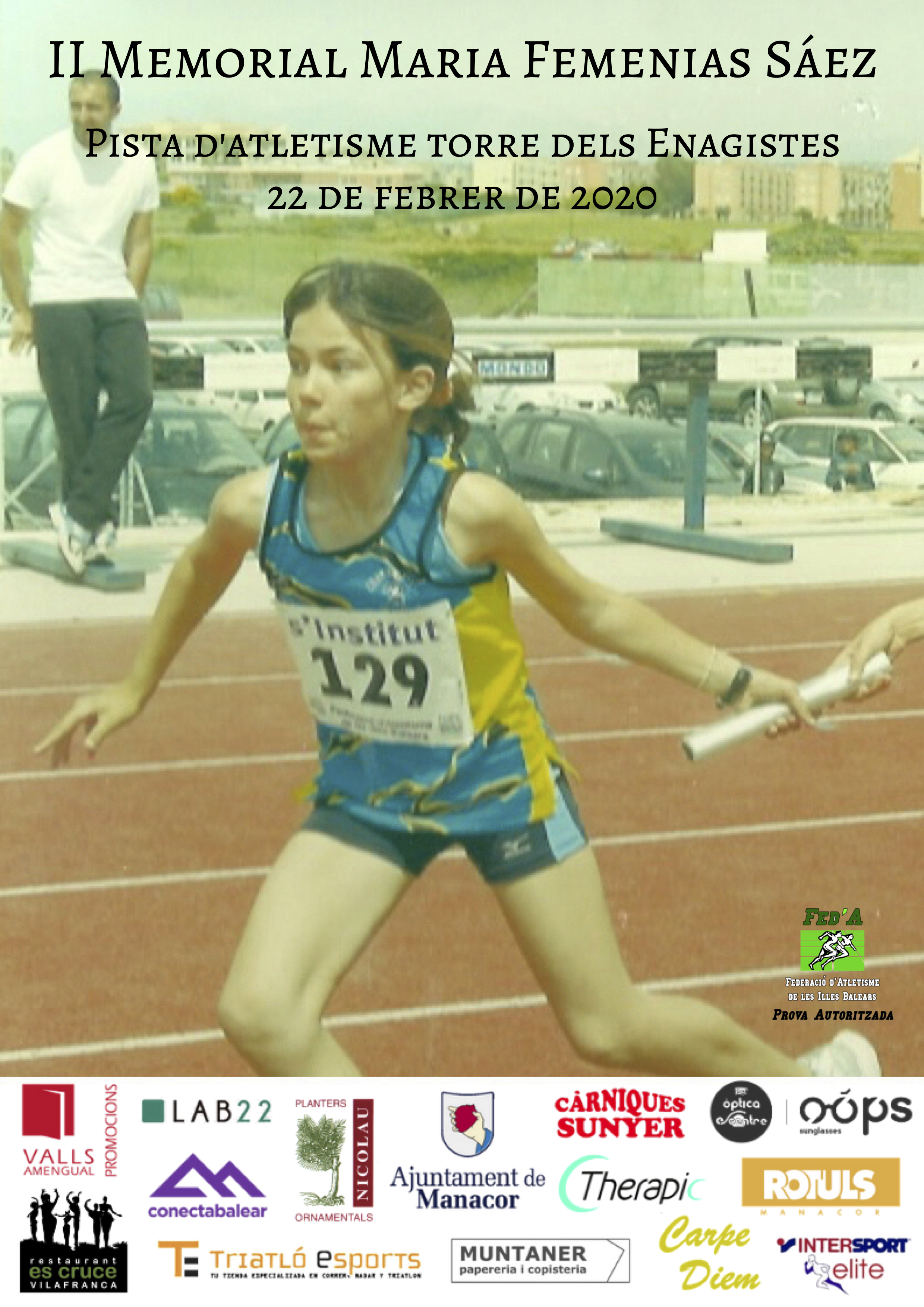 Des del Club Atletisme Manacor, ens plau convidar-vos al II Memorial Maria Femenias Sáez, un acte per retre un humil homenatge a una de les atletes més estimades dins i fora del Club. Creim que la millor manera de recordar-la és prenent part en la seva prova predilecta, els 400 metres llisos, amb l’atorgament d’un obsequi als guanyadors de la prova. Per això, aquest acte s’inclourà dins el Campionat de les Illes Balears de proves combinades que organitza la Federació d’Atletisme de les Illes Balears el pròxim 22 de febrer a la pista d’atletisme Torre dels Enagistes. A més, també organitzarem un 4×400 mixt on s’atorgarà un obsequi a l’equip guanyador.